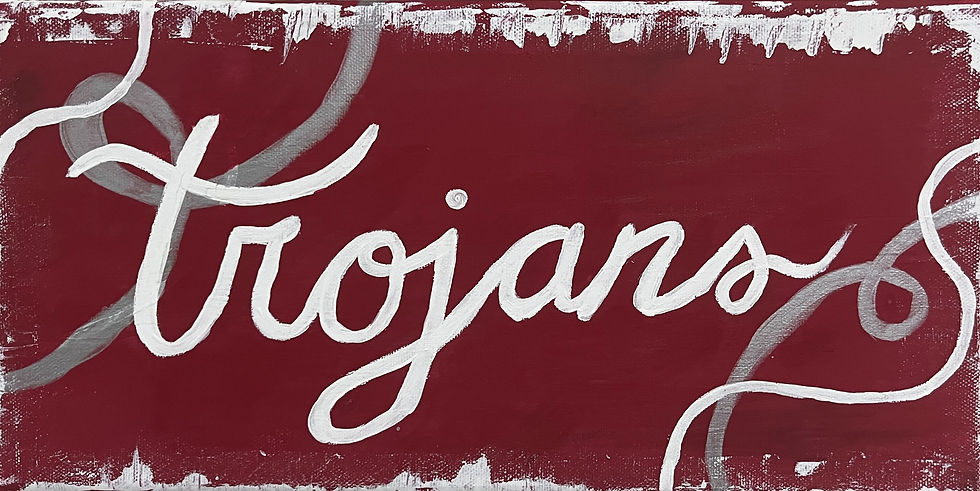 Here I have showcased some artwork I painted in my free time of other things! I really wanted a sign of my university, so I decided to paint a Trojans sign! I also added a winter looking border since it is getting colder and it's around that time of year. If you want any custom art, just send me a message!